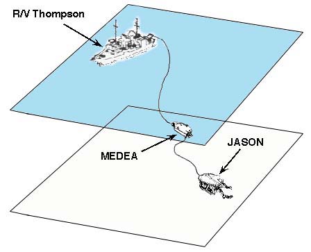 圖3 ROV Jason & Medea和母船Thompson海上作業(yè)模式圖