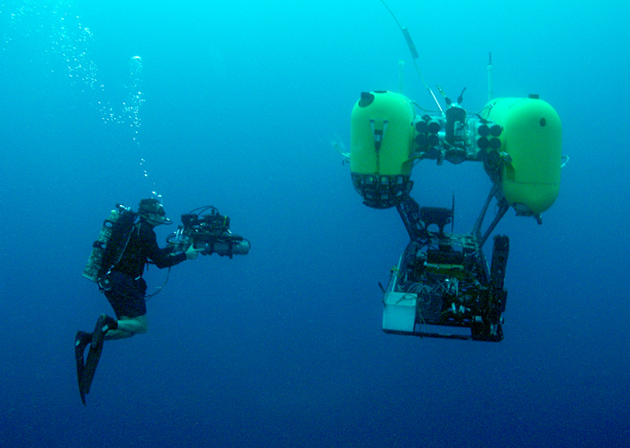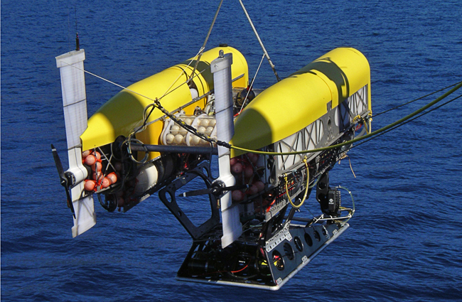 為了增加對深海的了解,伍茲霍爾海洋研究所的科學家和工程師們與2008年設計了一款更高效、多功能的混合動力潛水器海神號,這款潛水器可以在深海極端環境下進行作業。這臺遠程遙控潛水機器人以希臘神話中的海神“Nereus”命名,全名Hybrid Remotely Operated Vehicle Nereus海神號(Nereus)是一臺混合型遙控潛水器(HROV),能夠在世界各地從6000-11000米的超深淵(hadal depths)作業,曾在2009年下潛到挑戰者深淵Challenger Deep)?!昂I瘛碧柺鞘澜缟系谌齻€到達馬里亞納海溝底部的潛水器?!昂I瘛碧栔苑Q作混合動力潛水器,是因為它可以以兩種方式進行操作。它以遠程控制、系纜模式操作、以自由游動的自治模式操作時,可把它變成一臺有纜遙控潛水器或無纜自治潛水器。此時,它可以調查海底深度、描繪海底地圖,以及拓寬科學家的觀察范圍。當海神號發現了科學家們感興趣的東西,它可以返回母船,變成遠程操縱潛水器(ROV),即用一根光纖電纜將海神和母船連在一起。海神可以通過這根電纜傳遞高清晰度的實時視頻和接受來自母船上潛航員的命令,采集樣品或用機器手臂進行實驗。因為能夠在這兩種操作模式之間切換,海神號能夠在洋底執行大量的任務,包括測繪、搜集巖石和沉積物樣本、捕捉海底生物、對海底化學物質和還是取樣、拍攝照片等。