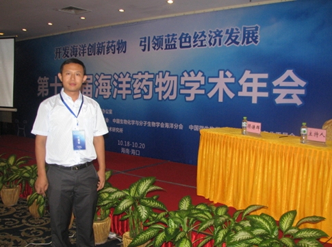 10月18日至20日,三亞深海所深海微生物活性物質(zhì)研究組助理研究員韓壯博士受邀參加了在海南海口召開的2013年第十一屆海洋藥物學(xué)術(shù)年會。會議得到了國家863計劃海洋技術(shù)領(lǐng)域辦公室的大力支持,由中國藥學(xué)會海洋藥物專業(yè)委員會、中國生物化學(xué)與分子生物學(xué)會海洋分會、中國微生物學(xué)會海洋微生物學(xué)專業(yè)委員會聯(lián)合舉辦,中國熱帶農(nóng)業(yè)科學(xué)院熱帶生物技術(shù)研究所承辦。中國海洋大學(xué)管華詩院士、顧謙群教授和北京大學(xué)的林文翰教授等一批國內(nèi)外著名學(xué)者受邀出席。