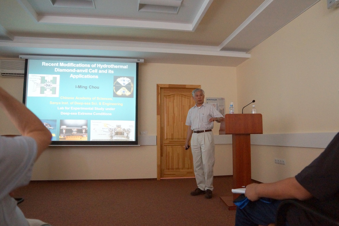 6月9日至14日,中科院深海科學(xué)與工程研究所深海極端環(huán)境模擬研究實(shí)驗(yàn)室主任周義明研究員應(yīng)邀參加在俄羅斯新西伯利亞舉辦的第十二屆GeoRaman國際會議。會議期間,周義明研究員做了題為“Raman Spectroscopic Study of Cracking and Hydrolysis of Propane, C3H8, in Fused Silica Capillary Capsules between 300 and 400℃”的大會報(bào)告、與Dr. Alian Wang 討論與火星探測相關(guān)的合作計(jì)劃;在拉曼學(xué)校開展了題為“Recent Modifications of Hydrothermal Diamond-anvil Cell and Its Applications”的培訓(xùn)課。