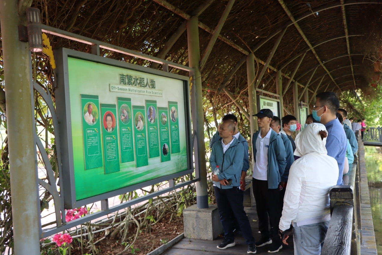 各個支部黨員在認真聆聽水稻國家公園工作人員講解雜交水稻的科普知識?