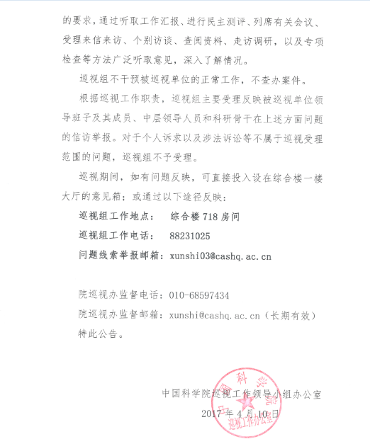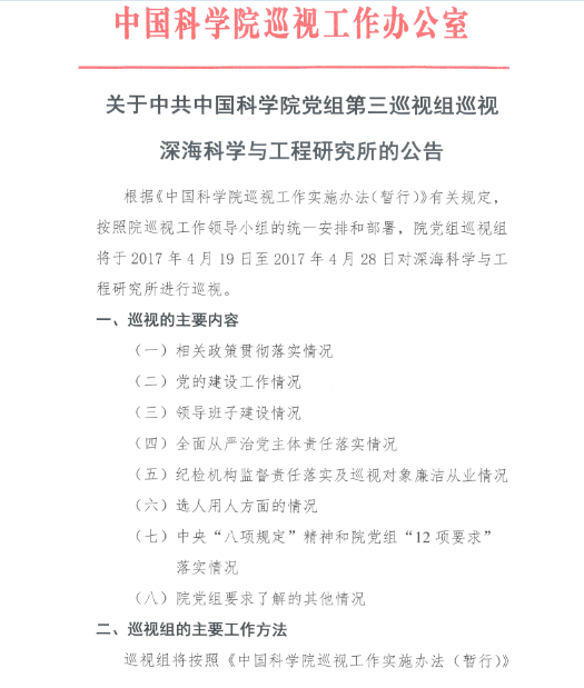 關(guān)于中共中國科學(xué)院黨組第三巡視組巡視深海科學(xué)與工程研究所的公告