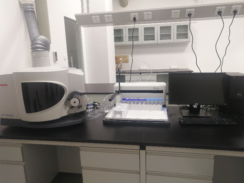 ICP-OES 7400位于綜合樓一樓101實驗室,該儀器配置了標(biāo)準(zhǔn)進(jìn)樣系統(tǒng)、垂直高鹽進(jìn)樣系統(tǒng)及垂直耐HF進(jìn)樣系統(tǒng);具有快速多元素同時分析、靈敏度高、檢出限低、耐基質(zhì)、線性動態(tài)范圍寬等優(yōu)點(diǎn)。可用于生物、地質(zhì)、材料、食品、環(huán)境等各類樣品中大多數(shù)元素的定量分析。