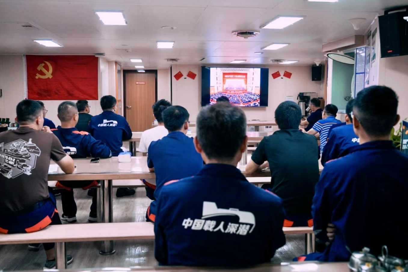 新思想引領新時代,新使命開啟新征程。10月16日上午10時,中國共產黨第二十次全國代表大會在北京人民大會堂開幕。此次會議是在全黨全國各族人民邁上全面建設社會主義現代化國家新征程、向第二個百年奮斗目標進軍的關鍵時刻召開的一次十分重要的大會,萬眾聚焦,舉世矚目。深海所組織黨員、群眾分別在科研園區報告廳、“探索一號”、“探索二號”科考船集中收看黨的二十大開幕會盛況,認真聆聽習近平總書記代表第十九屆中央委員會向黨的二十大作的報告。?